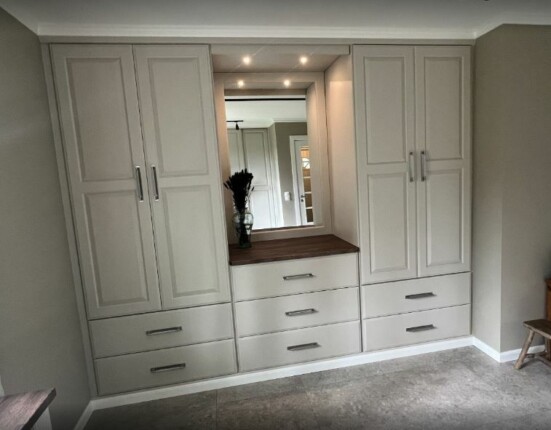 Åsgård 2-dørs garderobe med sittebenk. Speialbygget til kunde.