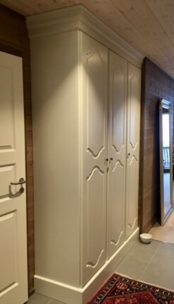 Åsgård 2-dørs garderobe med sittebenk. Speialbygget til kunde.
