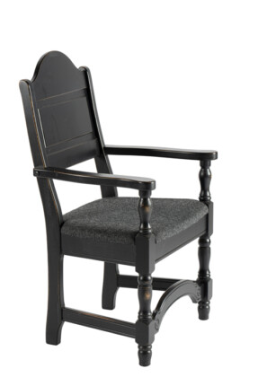 Stolen leveres med tre- eller stoppet sete. Kongsgård leveres i alle fargekombinasjoner og overflatebehandlinger. B: 58 cm, H: 103 cm, sittehøyde: 45 cm.