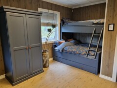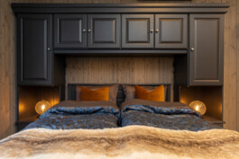 Vi har utstilt familiekøye, kommode, garderobeskap, seng med garderobeomramming og ett større garderobeoppsett i inspirasjonsbygget. I tillegg har vi møblert 4 soverom i Eikåshytta som ligger til høyre opp for inspirasjonsbygget. Her har vi en plassbygd familiekøye, garderobeskap, nattbord, plassbygd seng, frittstående seng og kommoder.