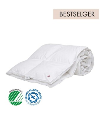 Er du en frossenpinne som elsker at dynen er tjukk og varm når vinteren og kuldegradene kryper nedover? Da er Saga ekstra varm dynen for deg. Saga-serien er vår absolutte bestselger, og det skjønner vi godt. Saga er en dundyne produsert med tanke både på miljø og din komfort. Dynen er Svanemerket, og så ren at den er anbefalt av Asthma Allergy Nordic.
