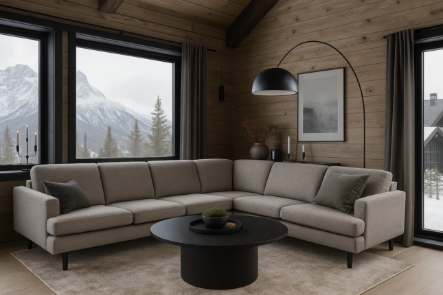 Lysgård vinkelsofa leveres i mange mål, varianter og stoff.