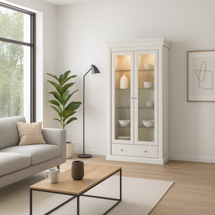 Elvegård 2-dørs vitrineskap. B117 cm, D42 cm, H192 cm.