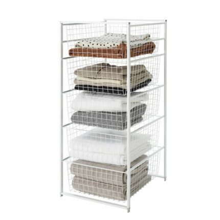 Lysgård seng med garderobeomramming. 3 skuffer i nattbord. klassisk hvit