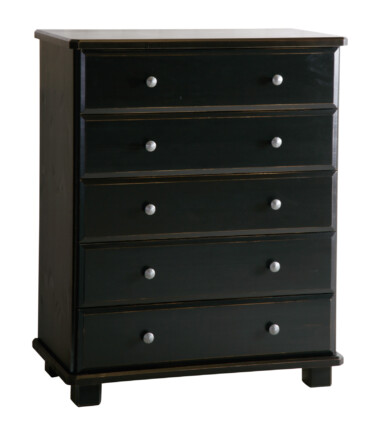 Storgård kommode, her avbildet i svart. Våre kommoder leveres med 3, 4 eller 5 skuffer. Fabrikkmontert med dempeskinner i skuffene.