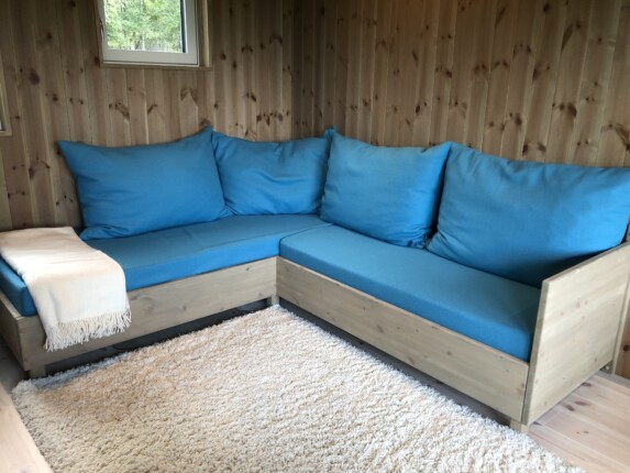 Holmgård familiekøye med trappehylle, hjørnemontert