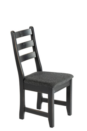 Lillegård spisestol. Avbildet i sort aldringsmalt med stoff Amdal 180.